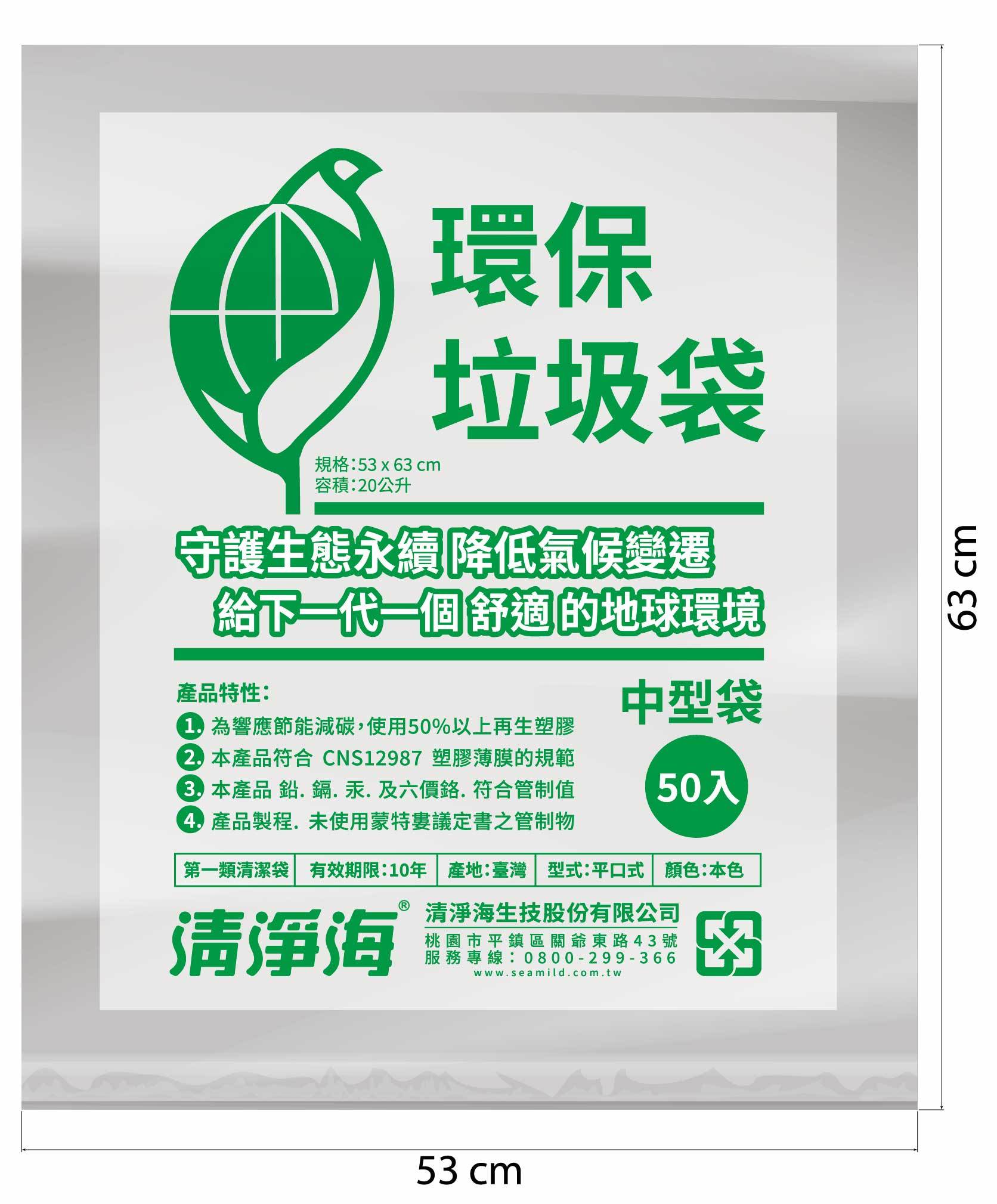 環標垃圾袋(中-53×63-650個/箱) 清淨海