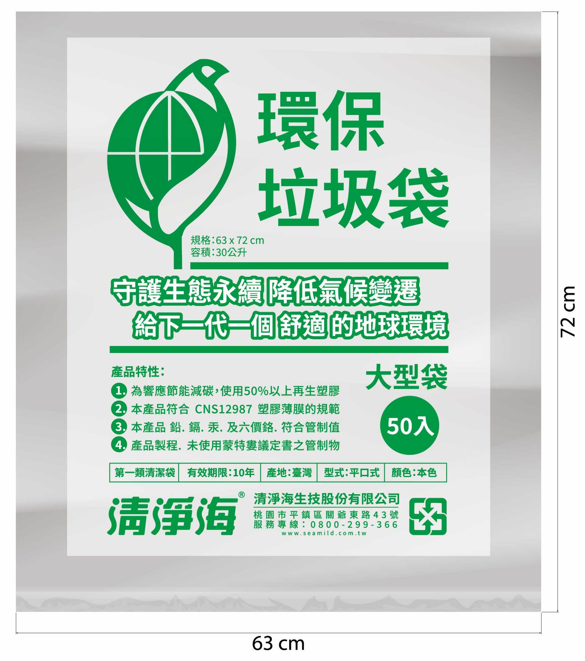 環標垃圾袋(大-63×72-500個/箱) 清淨海