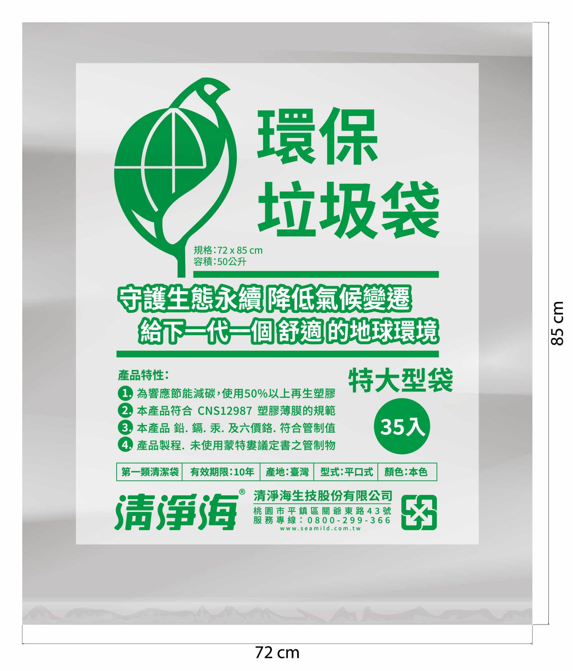 環標垃圾袋(特大-72×85-350個/箱) 佳佳或清淨海